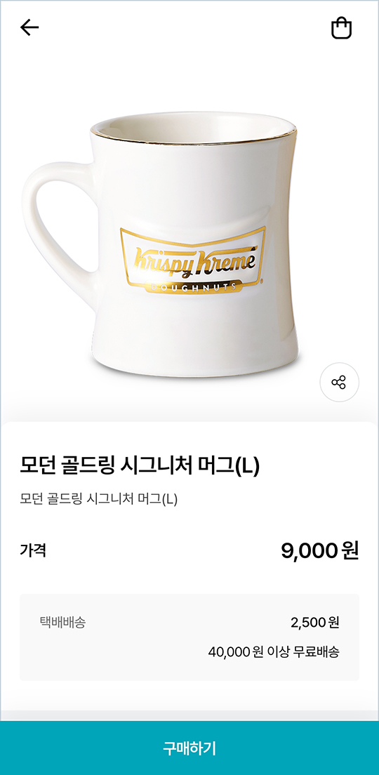 박스에서 꺼내 보면 요런 느낌.. 골드골드한 크리스피크림도넛 로고가 돋보이는 머그가 되겠고요..