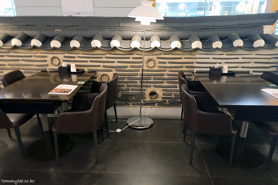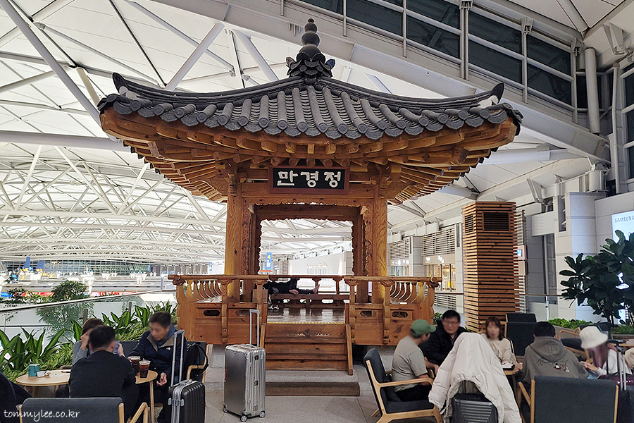 명가의뜰 인천공항점은 1터미널 4층 전문식당가에 자리하고 있답니다.. 3층 카운터 쪽에선 올려다봐도 안 보이는데.. 만경정 안쪽이라고 보시면 됩니다..