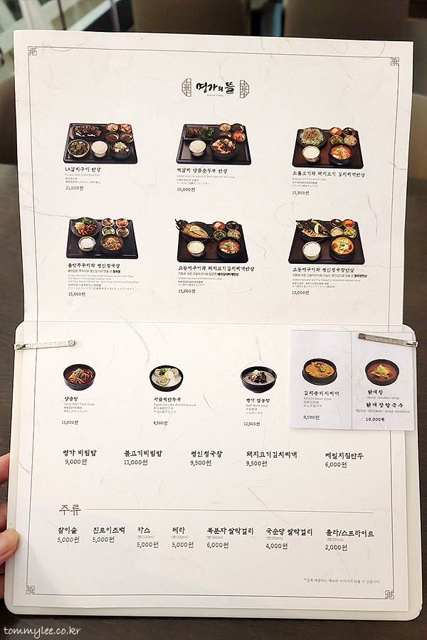 명가의뜰 메뉴판.. 인천공항답지 않은 착한 가격이 명가의뜰의 최고 매력.. 임대료 높은 공항에 있지만 가격이 비싸지가 않습니다.. 시내점과 가격이 같다는 거.. 명가의뜰이 메뉴 구성도 무난하고 가격도 좋고 한데.. 아쉬운 게 하나 있다면 시그니처 메뉴가 없다는 거 정도??.. 명가의뜰에서 꼭 먹어야 하는 그런 메뉴가 없습니다..