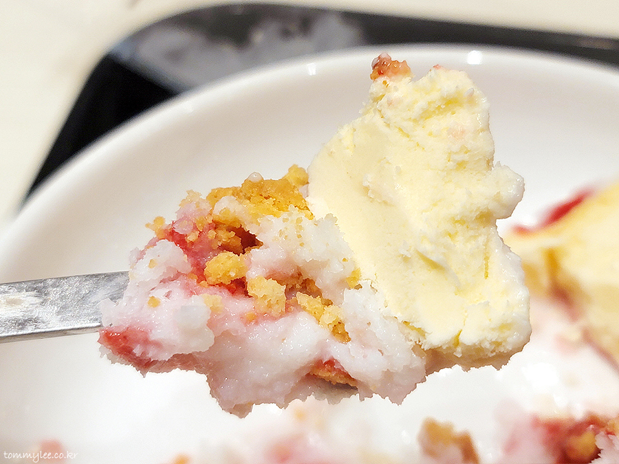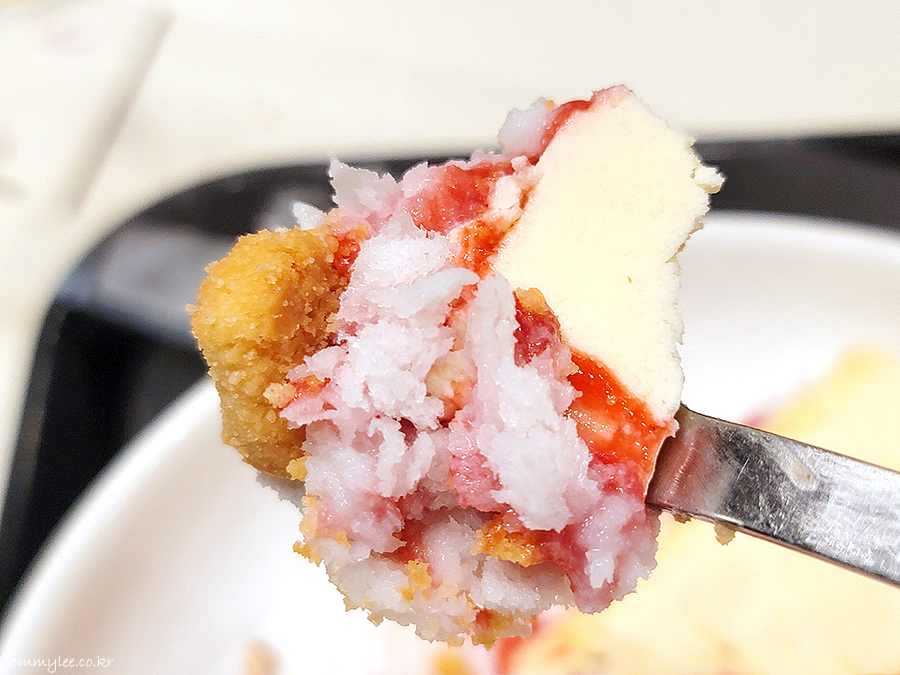 치즈케이크에 딸기소스 조합은 뭐 맛이 없을 수가 없는 컴비네이션이라 맛은 있다는 거..