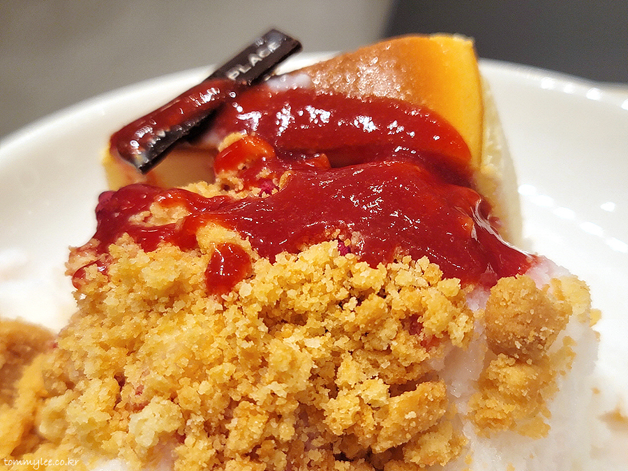 빙수를 감싸고 있는 펜스를 떼어내면 저 치즈케이크가 바로 떨어질 것 같은데 과연 저의 예상대로일까요??..