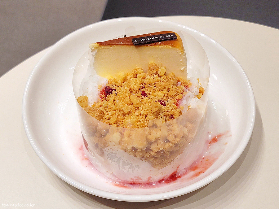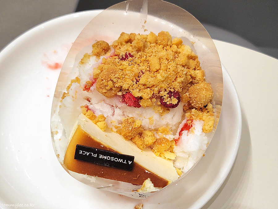 베리 크럼블 케이크 빙수는 기존에 없던 신메뉴라서 주문하게 되었습니다.. 베리소스가 따로 제공되고요.. 투썸은 소스샷을 빙수에 아포가토 해서 먹는 방식입니다..