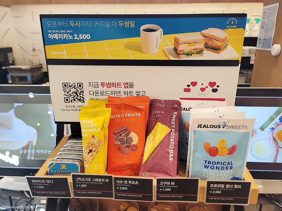 오픈부터 두시까지 커피살 때 두썸밀.. 모든 샌드위치, 샐러드 구매 시 런치 아메리카노 2,500원.. 두시까지인 두썸밀도 은근히 먹기 힘들다고 막.. ㅋㅋㅋ..