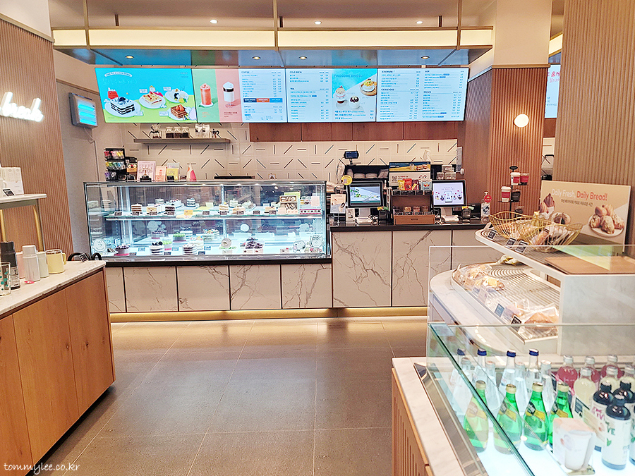투썸플레이스 안으로 들어서면 이런 느낌.. 캐셔에 직원이 없어서 한참을 기다림.. T데이 혜택은 포스온리.. 키오스크나 투썸오더는 적용불가고 직원에게 대면주문해야 가능합니다.. T데이 매직바코드 스캔하고 투썸하트 적립받고 결제 완료..