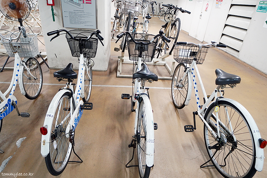 똑같은 자전거가 수십대가 있었어요.. 한국인관광객이 많이 오는지 물어봤는데.. 대여하시는 분들이 많진 않다고 합니다.. 200엔이면 24시간 탈 수 있는데 왜 아무도 안 오실까나.. ㅠ.ㅠ..