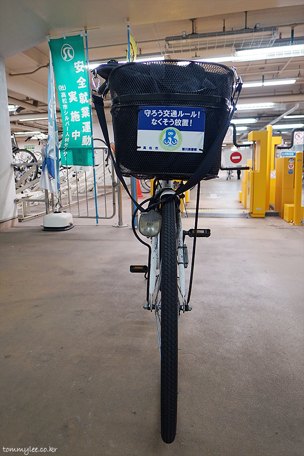 이제 대여할 자전거로 이동입니다.. 요 자전거인 듯 합니다.. 20년은 되어 보이는 연식의 자전거였고 뭔가 디자인이 타카마츠스럽고 했네요..