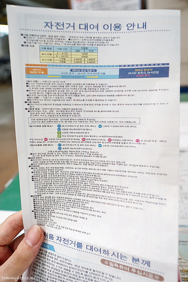 자전거 대여 이용안내가 이렇게 한국어로 자세히 설명이 되어 있어서 걱정하실 필요는 딱히 없을 것 같습니다.. 이거 한국사람이 만들었는지 한국어 표현이 완벽에 가까웠음.. 근데 글씨가 너무 작고 설명이 지나치게 디테일 하긴 하네요.. ㅋㅋㅋ..