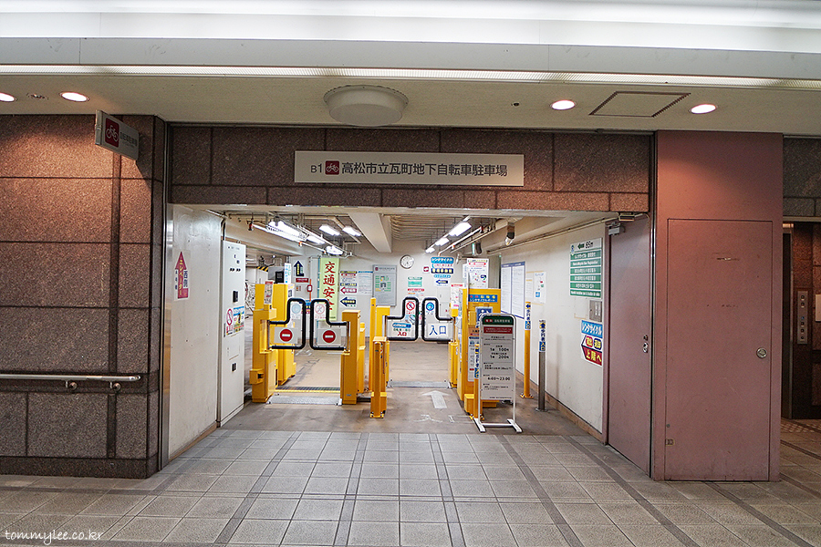 여기가 입구네요.. B1 타카마츠시립카와라마치지하자건거주차장이라고 쓰여있습니다.. 일본에서는 자전거를 자전차 自転車(지텐샤)라고 합니다..