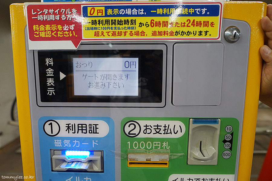이제 정산기라고 하는 이 출입구로 가서 요금을 내고 자전거를 타고 나가면 되는 거였네요..
