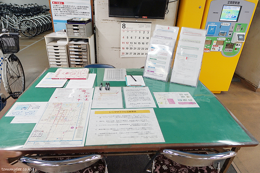 코로나 이후로는 이용객이 많이 줄어서 현재 JR타카마츠역앞 광장 지하대여소만 유인대여소로 운영하는 것으로 축소.. 이렇게 아날로그 방식으로 빌릴 수 있는 곳은 타카마츠역만 가능한 것으로 변경되었다는..