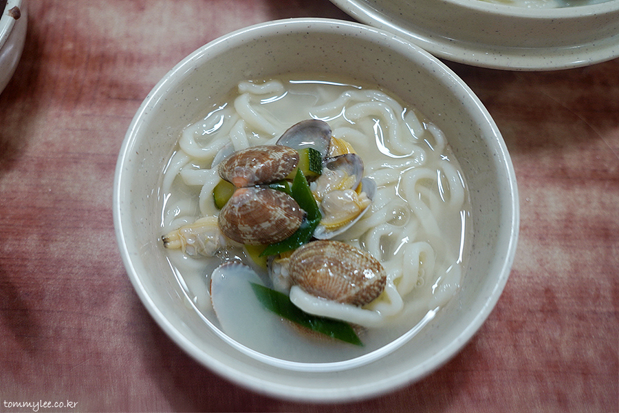 퉁퉁한 우동면이고요.. 바지락 국물이 간에 세지 않아 슴슴한 느낌이 들어 좋았네요.. 팥칼국수도 그렇고 살짝 심심한 맛이 이곳의 인기 비결이 아닐까 합니다..