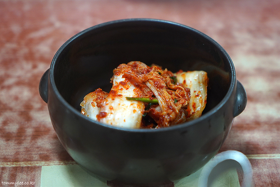 주문 후 바로 김치를 내주셨습니다.. 이렇게 항아리(?)에 많은 양을 주셨어요.. 반찬용 접시에 덜어 먹는 방식입니다..