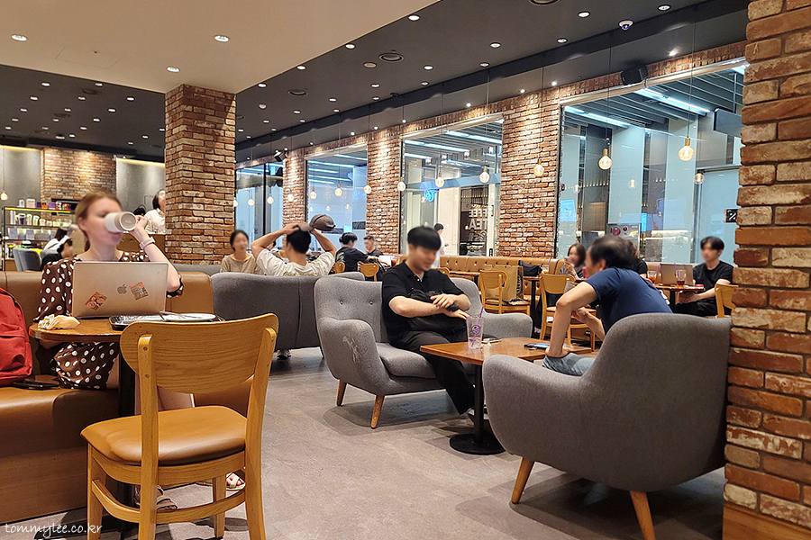 아니 근데 이게 무슨 일??.. 주문 하려고 줄을 섰네요??.. 이렇게 기다리면서 주문하는 모습을 최근엔 진짜 본 적이 없는데.. 암튼 주문하려면 많은 기다림이 필요했습니다만.. 저에겐 커피빈 퍼플오더가 있죠.. 퍼플오더로 기다림없이 바로 샤샤샥~.. ㅋㅋㅋ..