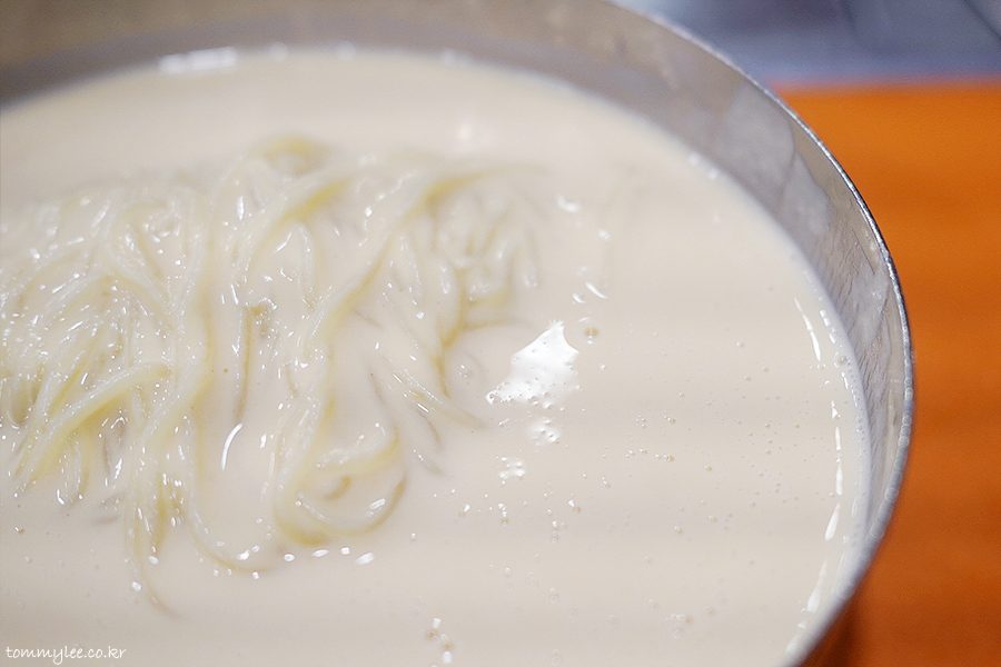 진한 콩국물이 면에 착싹 달라붙어 젓가락에 감겨 올라오는 훈훈한 이 모습..