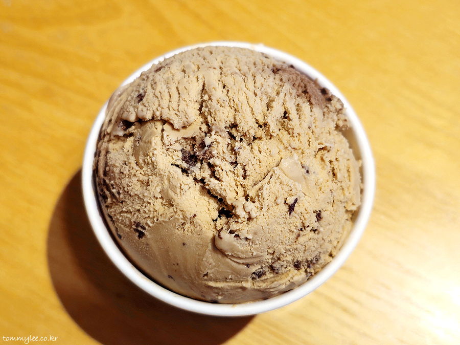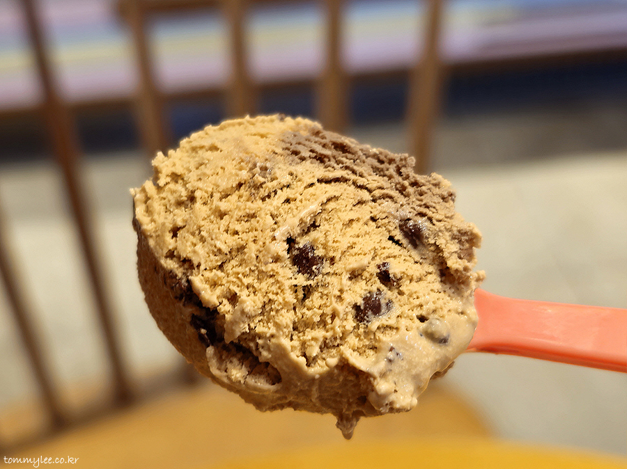 다크초콜릿에 헤이즐넛커피 조합이라 맛이 없을 수는 없습니다.. 거기에 초코칩과 헤이즐넛도 씹히고 식감도 좋고 맛의 조합이 이상적인데 어른스러운 맛이긴 해요.. 어린이들에겐 조금 어려울 수도..