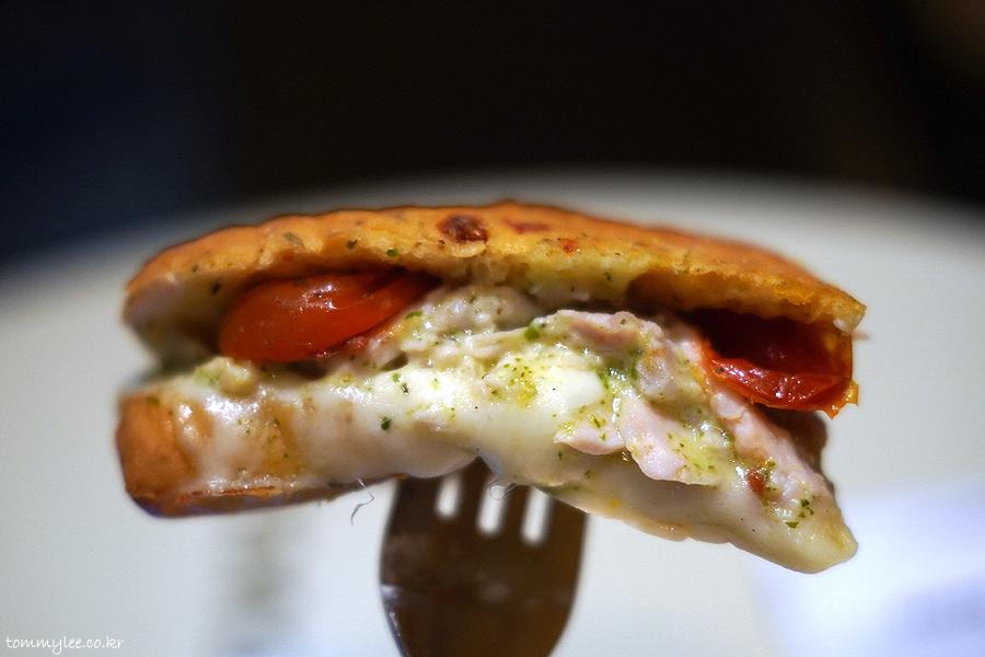 치즈가 생각보다 많이 들어가서 무거웠네요.. 바질향도 꽤 나고 해서 맛있어요.. 페퍼로니 치킨 파니니보다 훨 맛남..