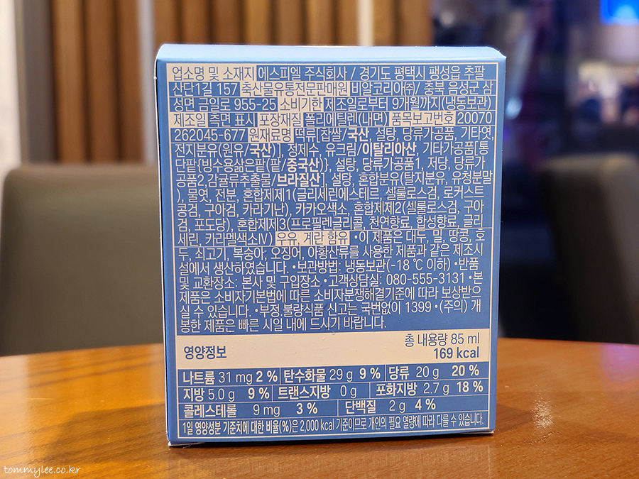 원재료 : 떡류(찹쌀, 설탕, 당류가공품, 기타엿, 전지분유), 정제수, 유크림, 기타가공품(통단팥, 설탕, 당류가공품, 저당, 감귤류추출물), 설탕, 당류가공품, 저당, 물엿, 전분, 글리세린에스테르, 셀룰로스검, 로커스트검, 포도당, 프로필렌글리콜, 천연향료, 합성향료, 글리세린, 카라멜색소4.. MADE IN KOREA..