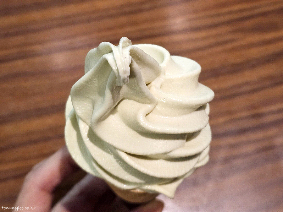 부드러운 피스타치오 소프트크림을 돌려가며 냠냠.. 피스타치오와 상하목장 우유의 완벽한 조화.. 홍대점의 후한 아이스크림 인심 굿굿..