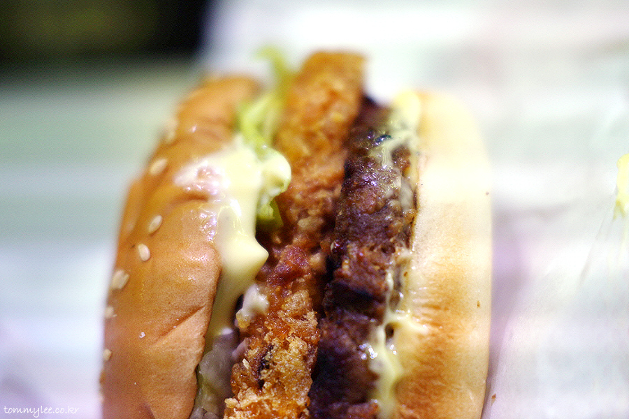 두툼한 패티에 기름 쭉쭉 해쉬드감자까지 훈훈하네요.. 볼륨감이 있는 만큼 칼로리 또한 657Kcal로 만만하지 않다는 거.. ㅋㅋㅋ..