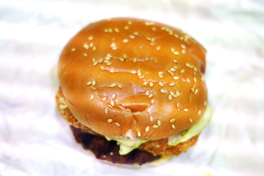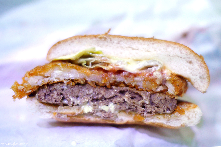커팅해 보면 이런 느낌입니다.. 커팅해 보니 확 느껴지는데 전의 메가바이트보다 양상추 양이 적네요.. 복불복이 있는 건가.. 흠..