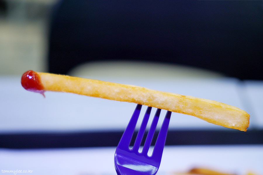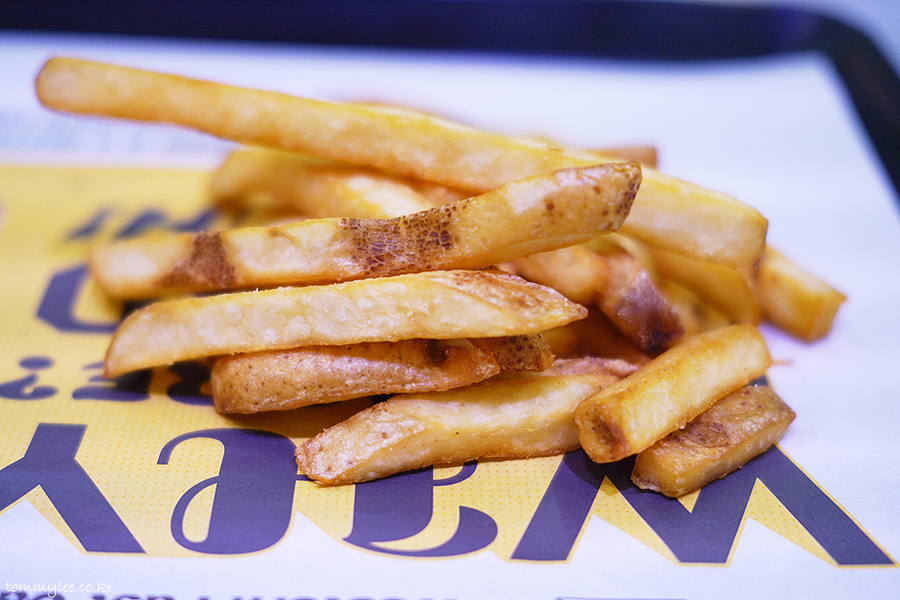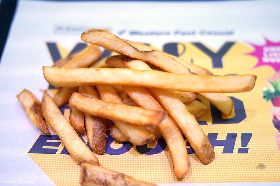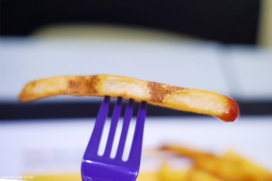 감자튀김을 트레이에 쏟아 보면 이런 느낌.. 보시다시피 스킨이 붙어 있는 진짜 팸레스타일 포테이토이고요..