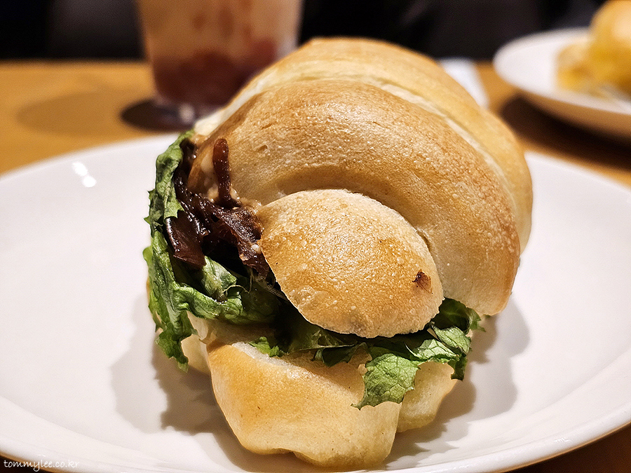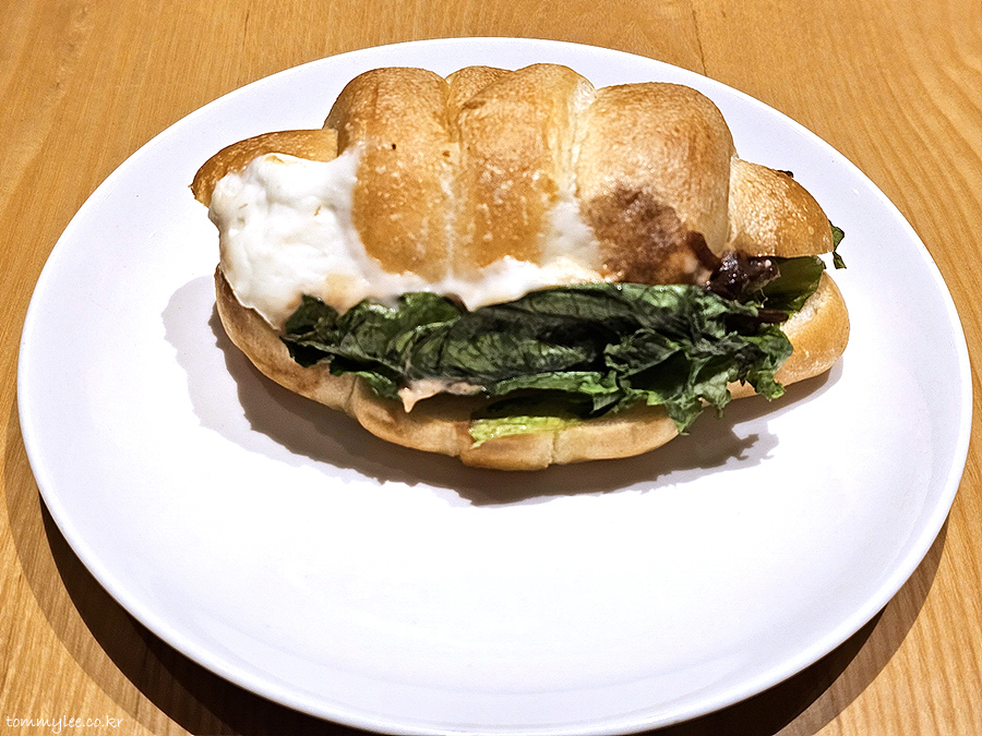 빵만 살짝 덥히면 좋을 텐데.. 열에 취약한 리코타 치즈와 로메인까지 같이 히팅이 되면서 뒤죽박죽 엉망이 된 기분이랄까.. 굳이 소금빵과 매칭을 했어야 했을까 하는..