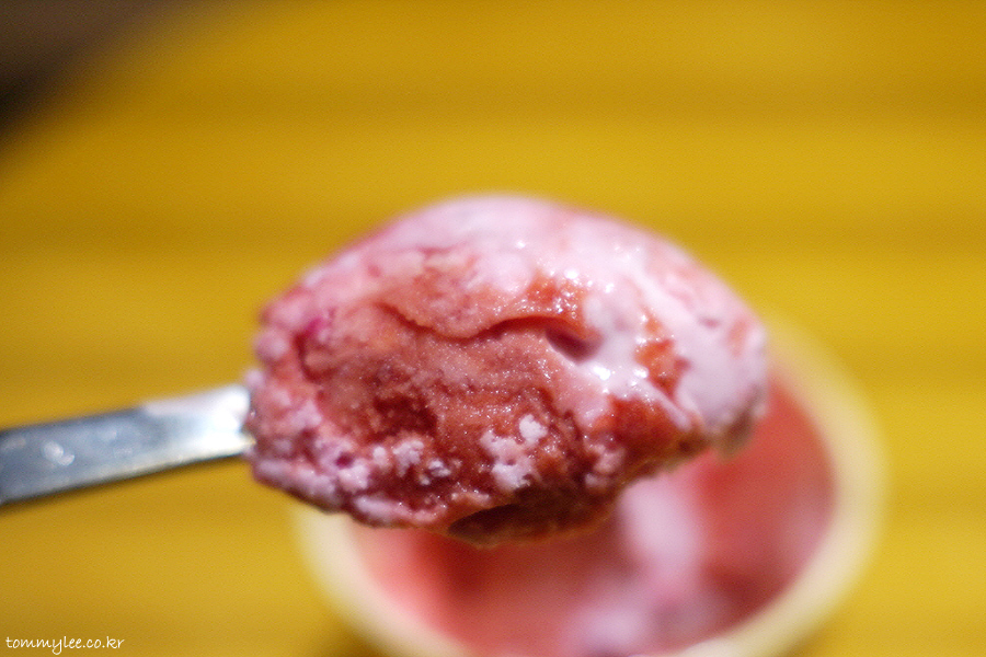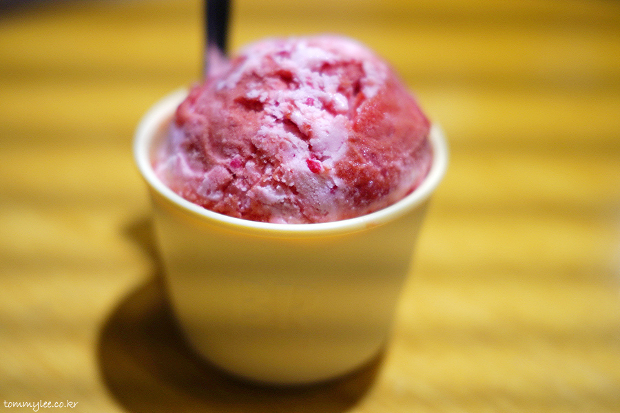 먹으면 입안에서 톡톡 터지는 팝핑캔디의 어택.. 탕탕! 스트로베리란 이름이랑 너무 잘 어울린단 생각.. 딸기 아이스크림보다는 딸기 소르베 비중이 더 높아 가벼운 느낌이라 쑥쑥 잘 넘어가네요.. 실제 칼로리도 살짝 낮은 편..