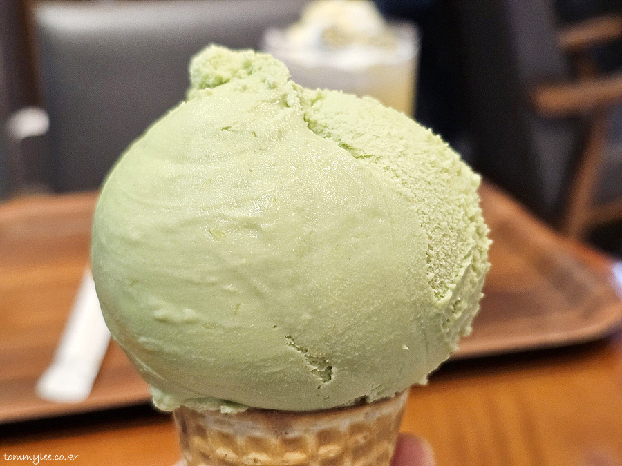 주문하고 테이블에 앉아 있었는데 바로 번호 부르길래.. 벌써 나올 리가 없는데 하면서 카운터로 갔는데.. 점주님께서 와사비 아이스크림은 미리 맛보기를 권한 후에 드리고 있다면서.. 맛보기 스푼을 건네 주심.. 강제 맛보기.. 이런 적 처음.. 컴플레인당하셨나 봄.. ㅋㅋㅋ..