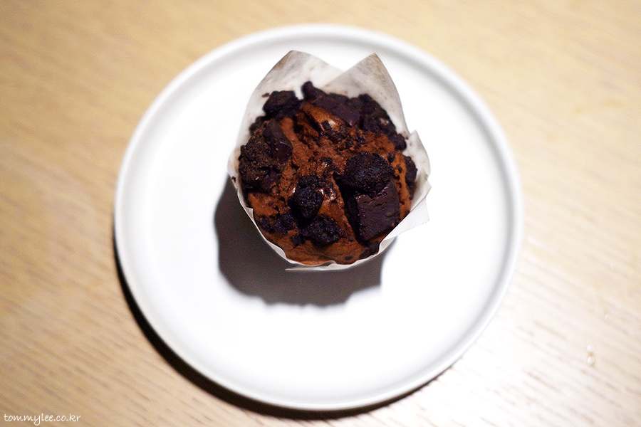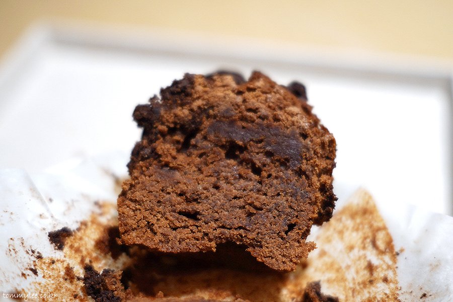 컵케이크처럼 생긴 브라우니 케이크의 모습이 되겠습니다.. 블루보틀 케이크의 특징이라면 사이즈가 작다는 거??.. ㅋㅋㅋ..