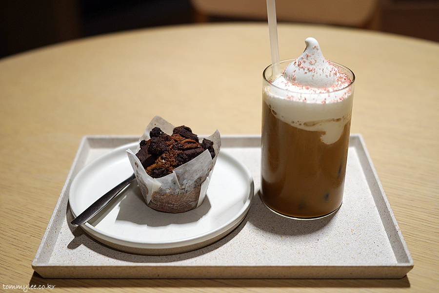 블루보틀에선 바스크 치즈케이크라는 생각이지만 어제 먹었어서 오늘은 브라우니 케이크로.. 위에서 바라보면 이런 느낌..