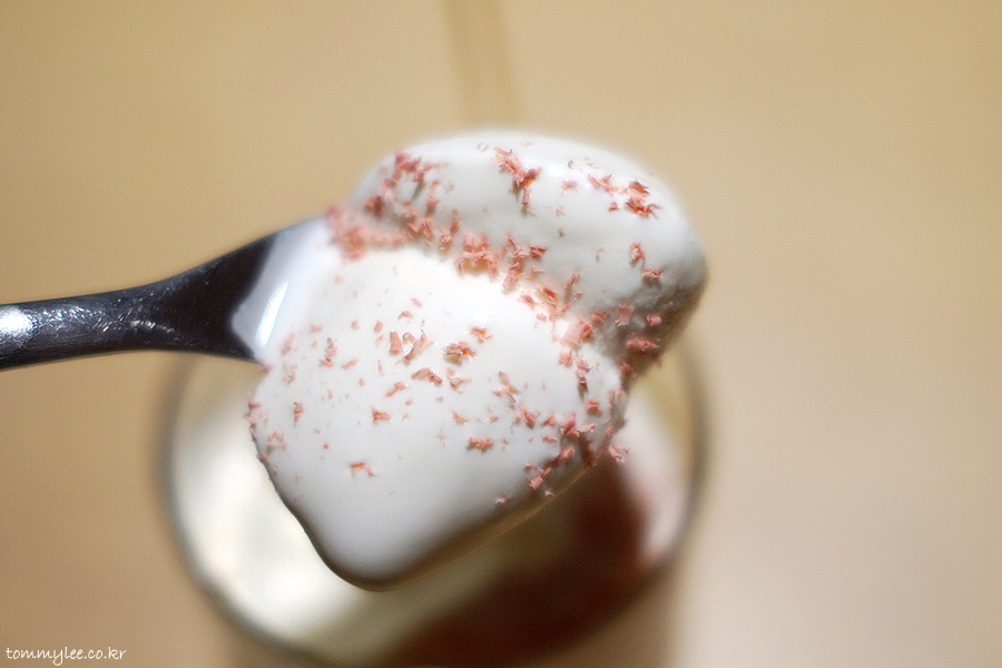 놀라 플로트에 스푼 주면 좋은데 여긴 신기하게도 안 줌.. 그래서 케이크에 주는 포크로 먹었어요.. 유기농 소프트 아이스크림을 퍼올리면 이런 느낌..