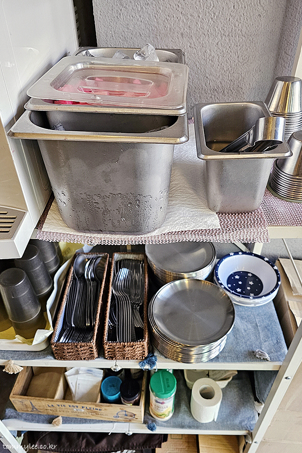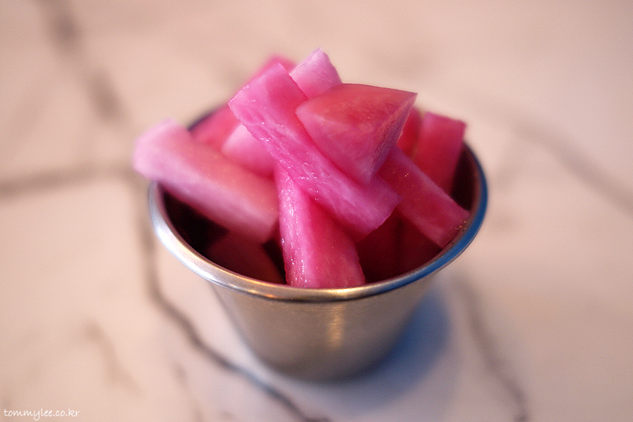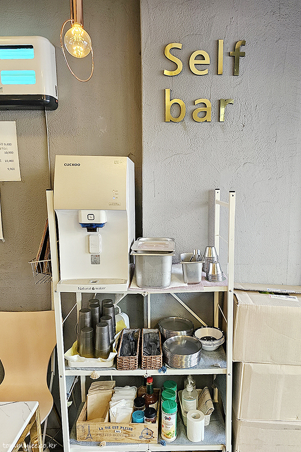 주문 후 바로 셀프바로.. 여긴 테이블 세팅이랑 물, 피클 등등이 모두 셀프입니다.. 홀 담당 직원이 없는 관계로 손님이 알아서 다 해야 해요..