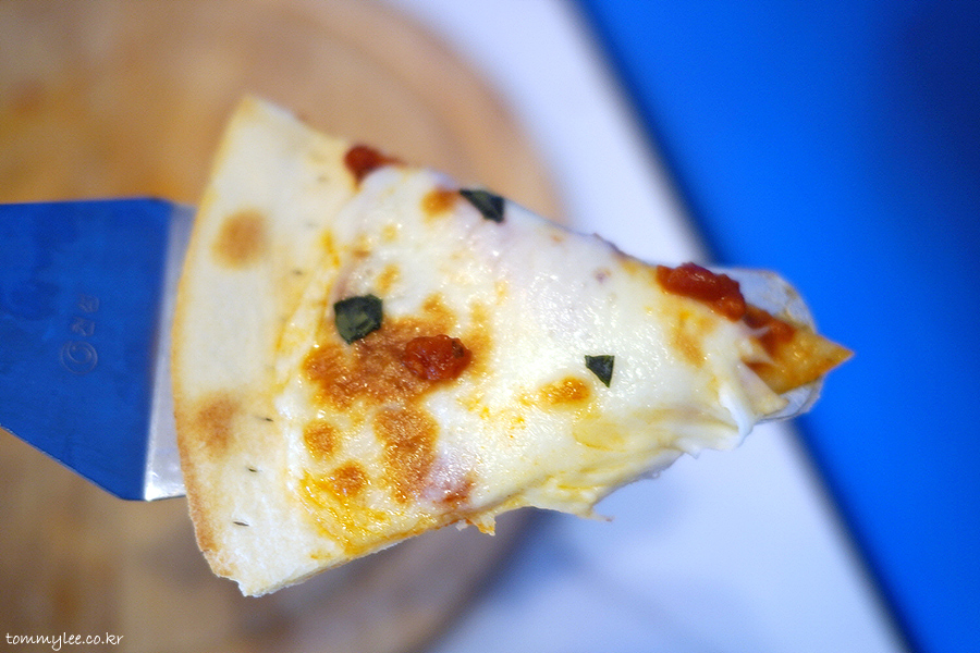 도우 상태는 일단은 별로인 것 같아 보이는데.. 치즈는 노릇노릇하니 예쁘게 잘 구워진 느낌이에요..