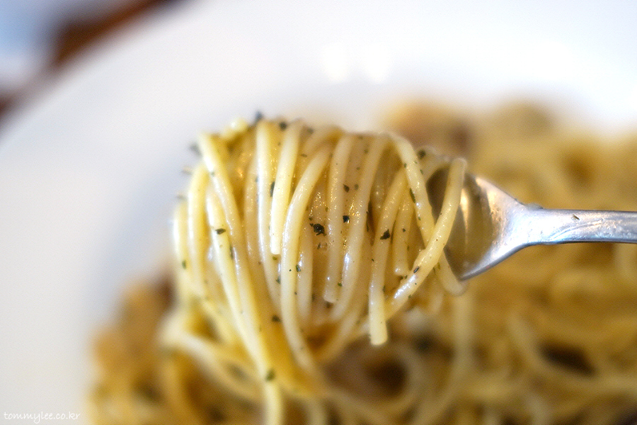 그안의 기본 오일 파스타 메뉴인 알리오올리오는 역시 배신을 하지 않는 아름다운 맛이었다는 스토리네요..