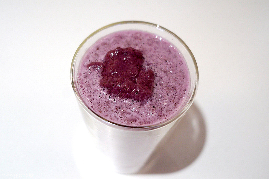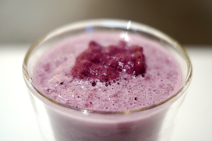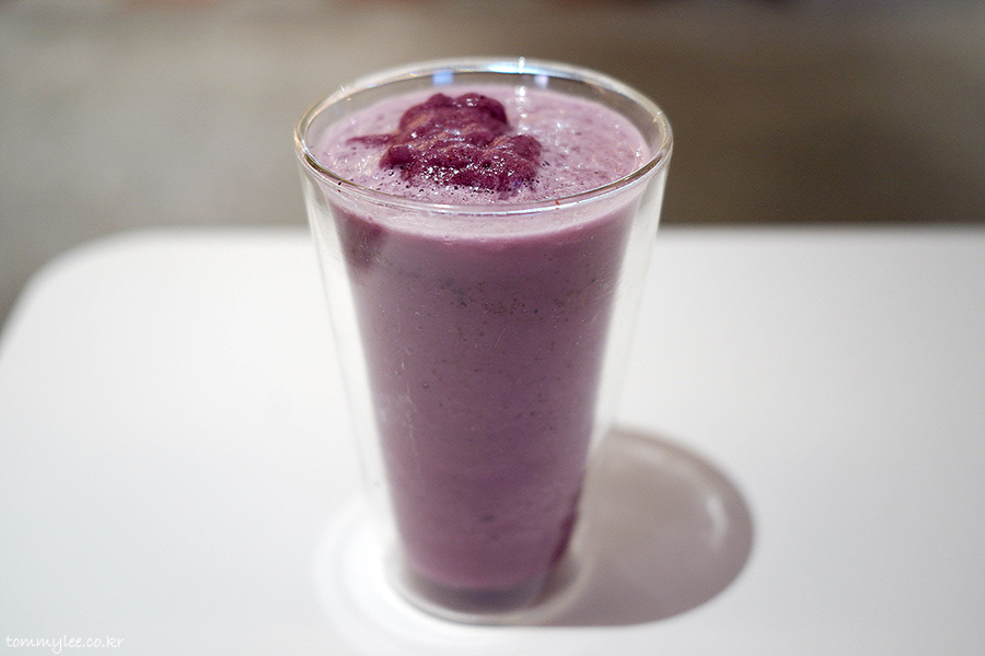 요거트계의 블렌디드인지라 휘핑크림이 안 올라가는데요.. 센터에 블루베리스러운 퍼플닷을 표현 해주셨답니다..