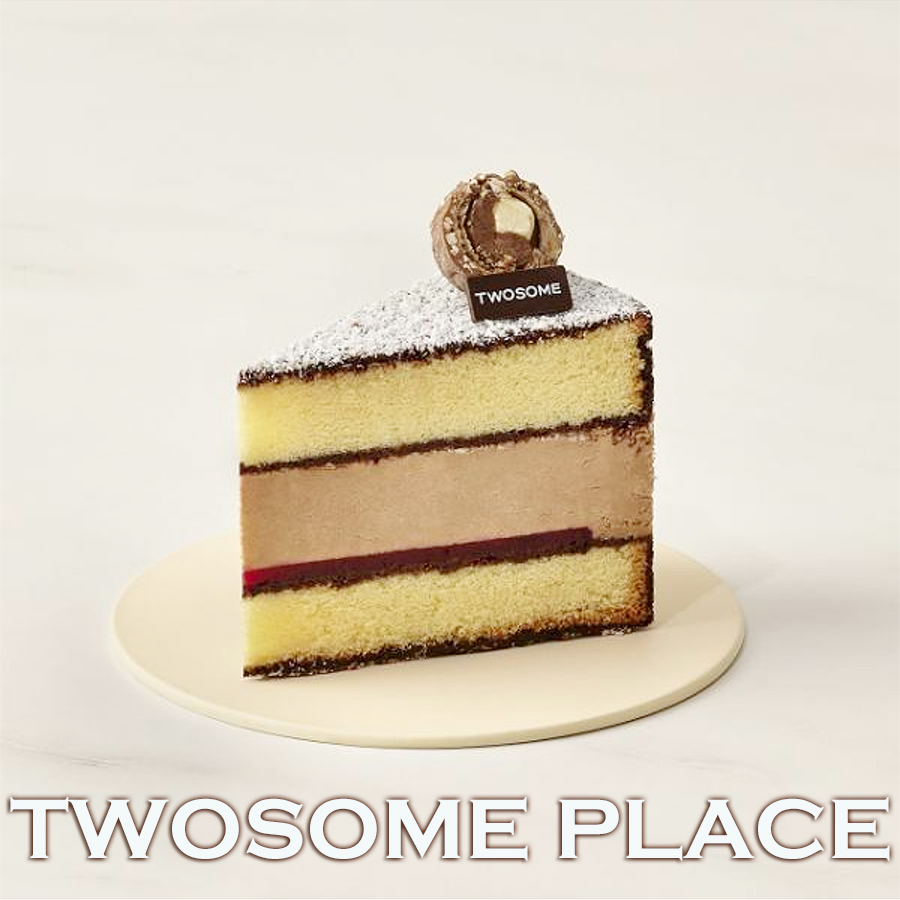 눈처럼 하얀 코코넛 파우더로 덮혀 있는 케이크랍니다.. 투썸 로고 초콜릿과 헤이즐넛 초코볼로 장식되어 있는 모습..