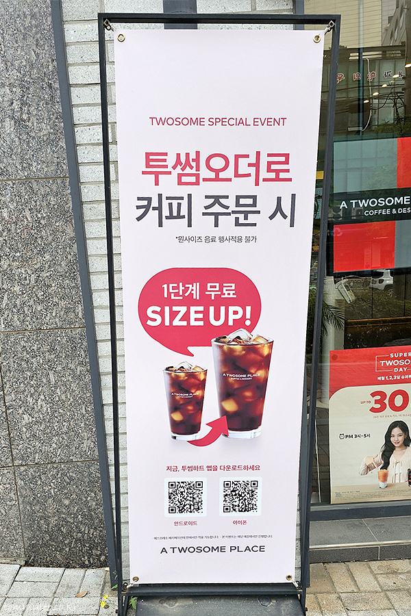 투썸 오더로 커피 주문 시 1단계 무료 사이즈업.. 그나저나 저 아메리카노들.. 두 잔 다 내가 마셔야 하는데 서프라이즈 업그레이드 이거 어쩔.. ㅋㅋㅋ..
