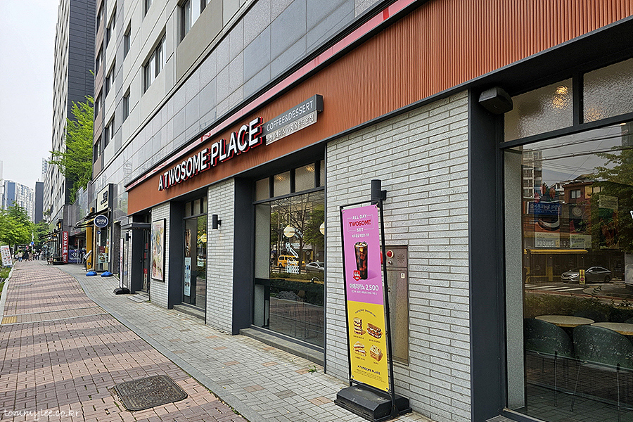 A TWOSOME PLACE.. GAJAEUL NEW TOWN.. 투썸플레이스 가재울뉴타운점.. 위치는 DMC 이편한세상 401동.. 영업시간은 08:00~23:00..