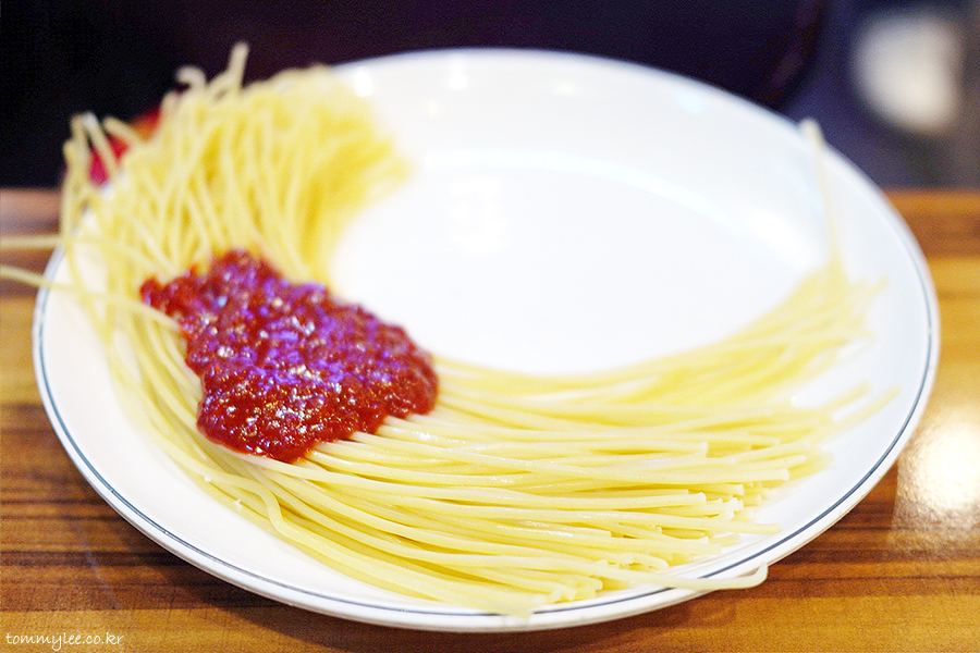 쫄면사리는 금새 익어서 바로 먹을 수 있는 상태가 되었답니다.. 일단은 쫄면부터 드시라는 담당서버님의 말씀..