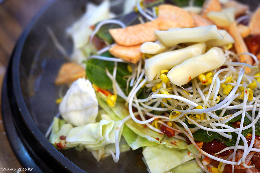 닭갈비엔 닭정육과 양념장, 떡, 고구마, 양배추, 깻잎, 콩나물 등이 들어가 있었다죠.. 특이하게 콩나물이 들어간 닭갈비였네요..