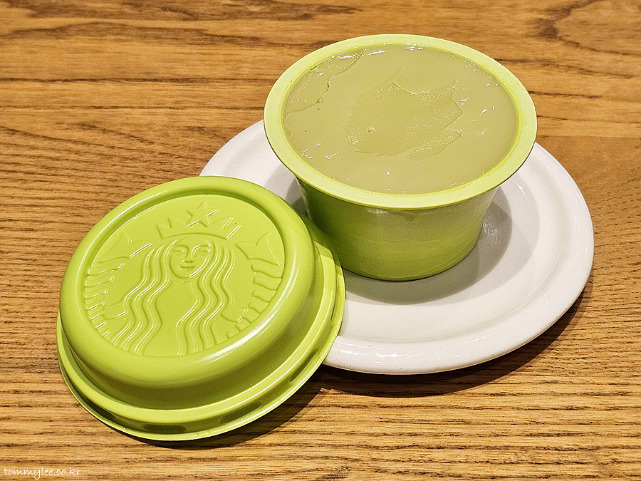 밀크, 초콜릿에 이은 3번째 맛.. 큼직한 스타벅스 사이렌 로고가 인상적..  녹차가 아닌 밝은 멜론색의 푸딩 패키지이고요..