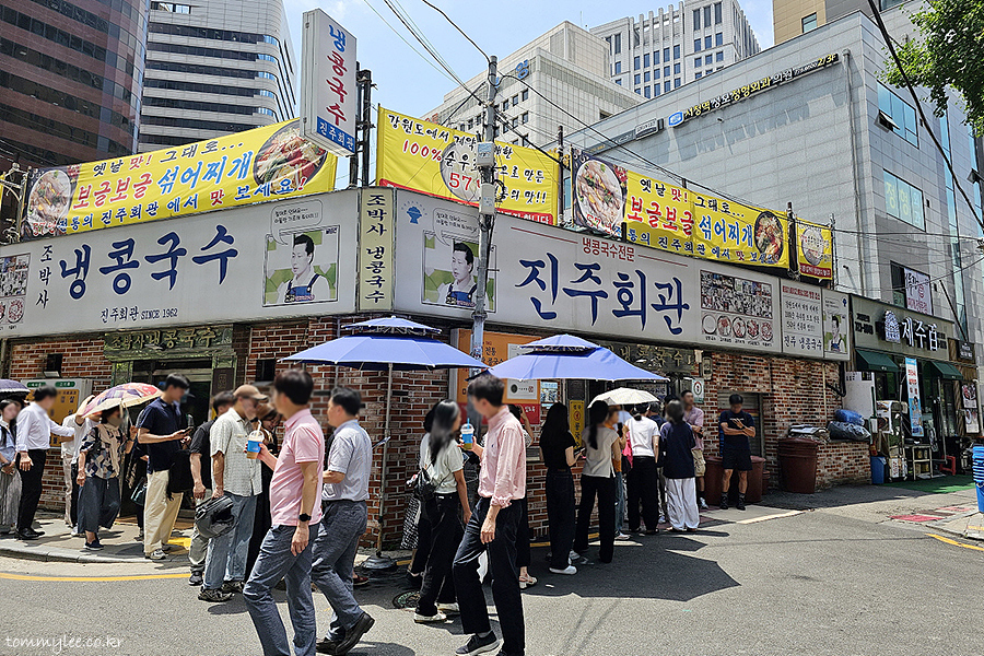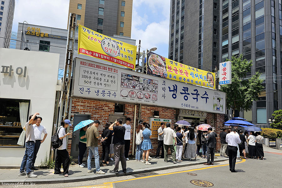 진주회관 콩국수를 먹고 싶은 사람은 많고 항상 줄을 서기 때문에.. 빨리 먹고 빨리 일어나야 하는 곳이니까 어쩔 수 없나 싶기도 함.. 진주회관 콩국수 가격이 예상대로 작년보다 천원 올랐다는 소식 전해드렸네요.. 어쨌거나 콩국수는 진주회관이 진리..