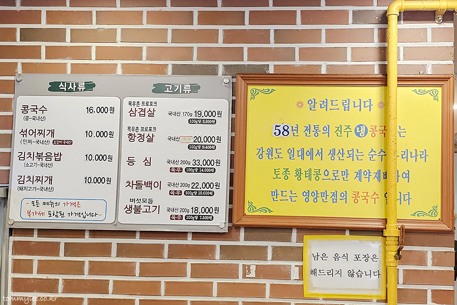 2024년 진주회관 콩국수 가격은 15,000원→16,000원으로 1천원 인상, 나머지 식사메뉴 가격은 인상 없고.. 고기류는 2천원 인상입니다..
