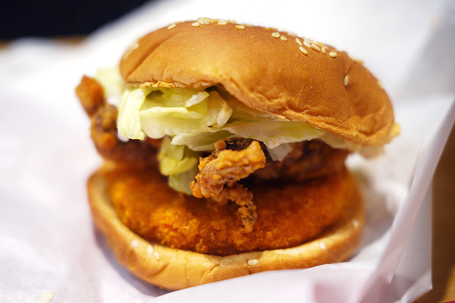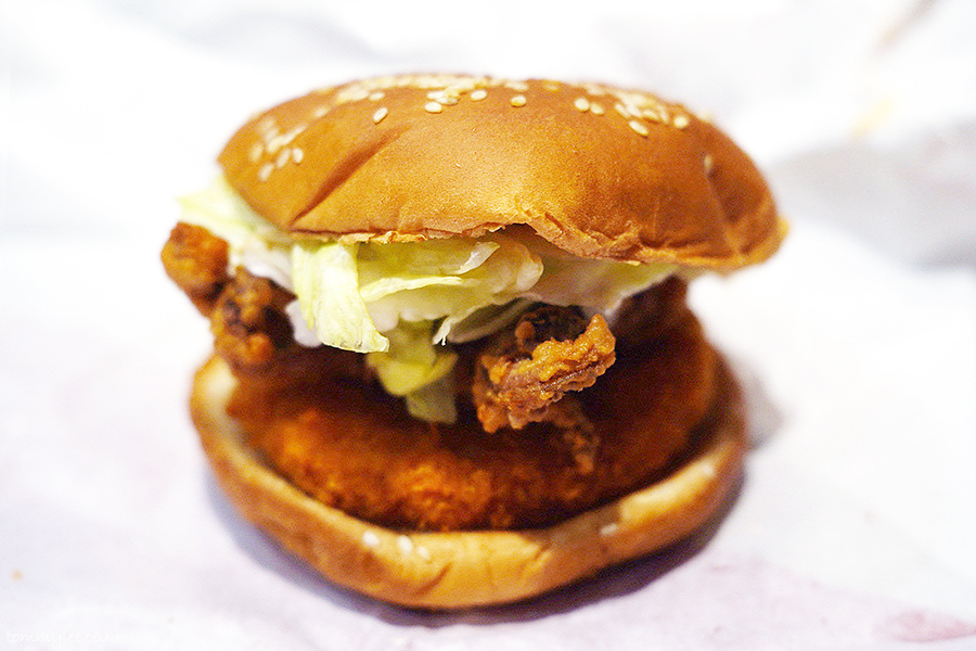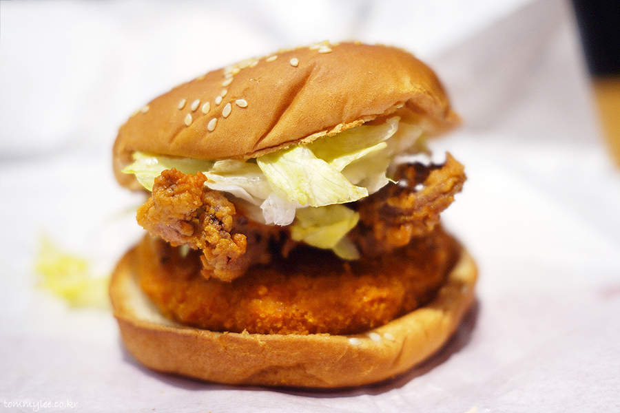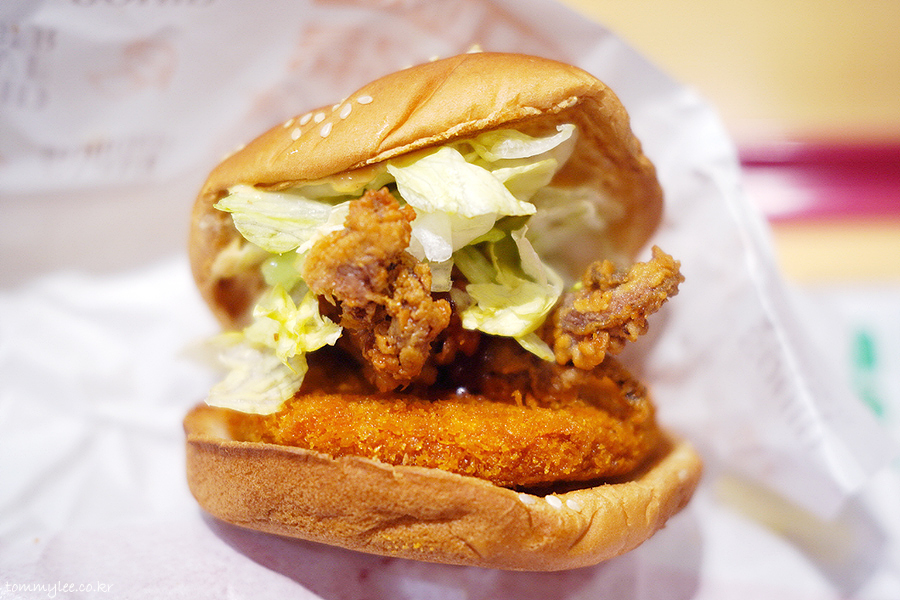 오징어패티 위에 오징어다리튀김을 올린 궁극의 오징어버거.. 오징어패티 대신에 비프패티를 선택할 수도 있는데.. 오징어패티가 빠지면 오징어버거가 아니게 됩니다.. 비프버전은 드실 필요가 없어요..