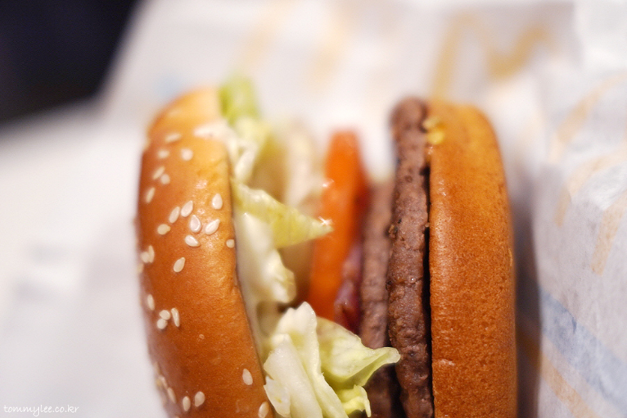 맥도날드 양상추양이 경쟁업체처럼 많아져서 늘 적응이 안 됩니다.. 예전엔 야채인심이 정말 박했는데 최근엔 많이 개선이 되었어요.. 번을 공중부양 시키고 있는 훈훈한 양상추양 굿굿..