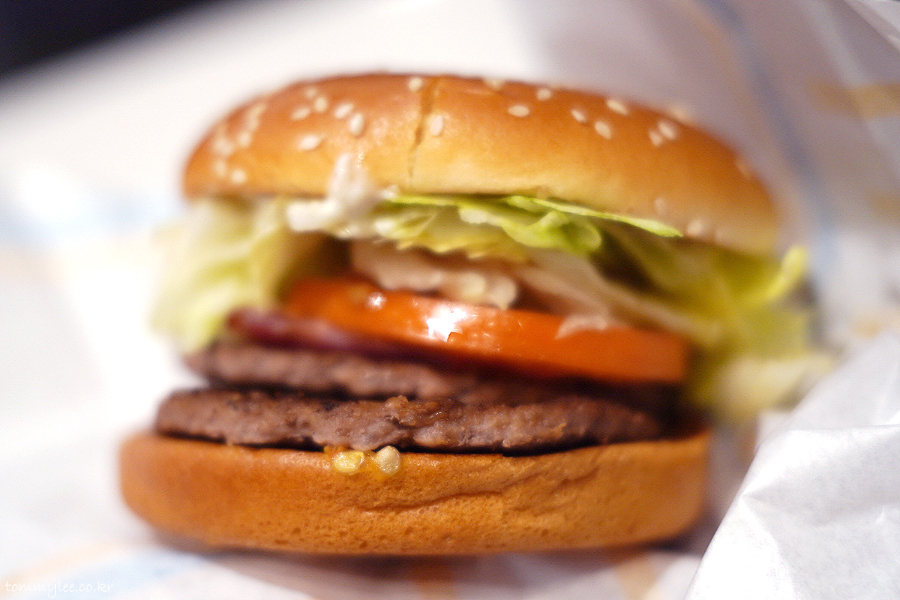 패티 2장에 베이컨 거기에 크림치즈까지 듬뿍 들어갔기 때문에 볼륨감이 꽤 있습니다.. 만족감에 비해 칼로리는 의외로 적은 편.. 597Kcal면 꽤 괜찮죠??..