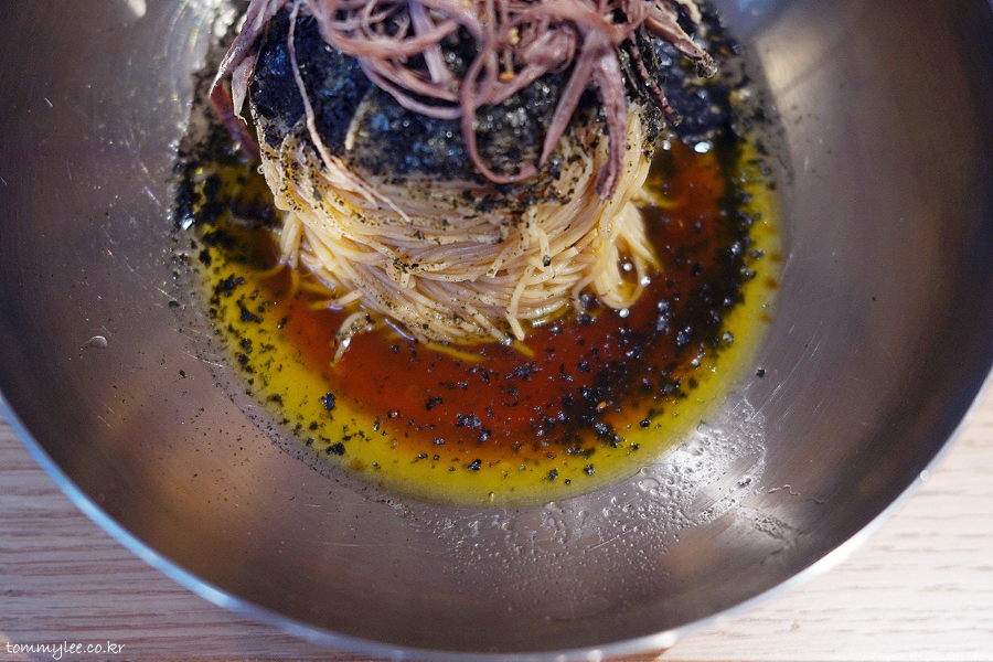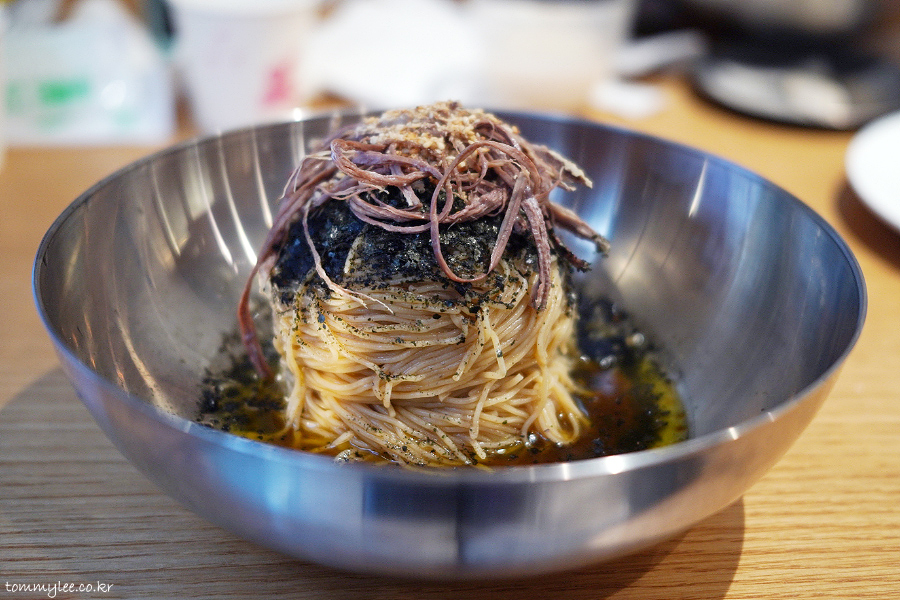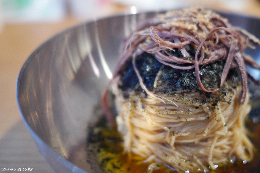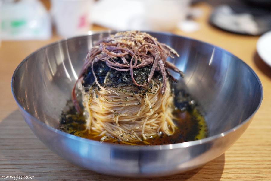 들기름냉면을 처음 드셔보신 지인분은 적응하기 힘들어하셨네요.. 왜 기름에 국수를 비벼 먹어야 하는지도 모르겠고 느끼하다고.. ㅋㅋㅋ..