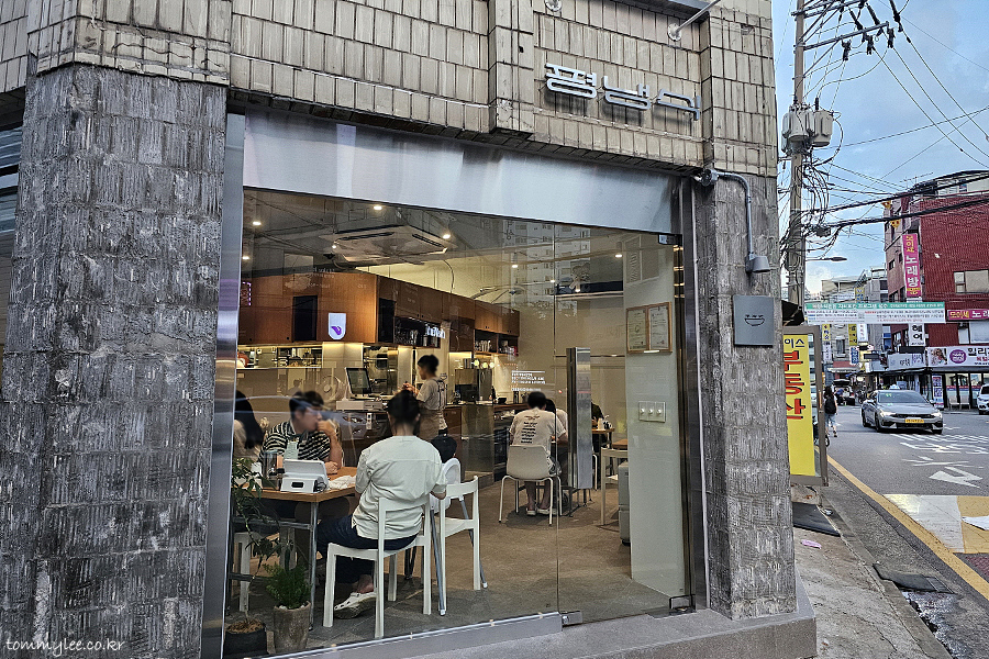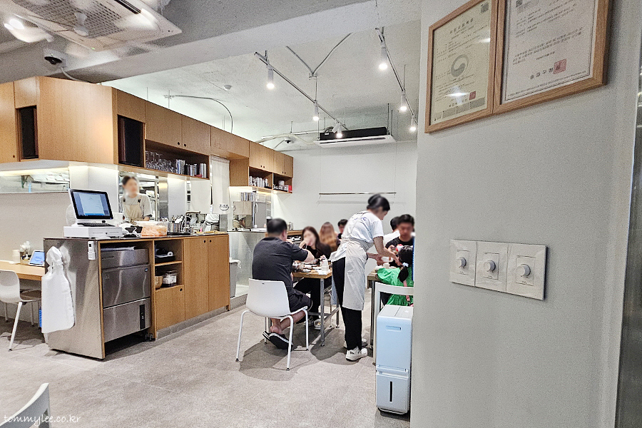 매장 안쪽은 뭐 요런 느낌입니다.. 오래된 타일 때문에 더티해 보이는 익스테리어와는 달리 인테리어는 매우 말끔하네요.. 뭔가 오픈키친도 다른 곳보단 감각 있는 듯하고..