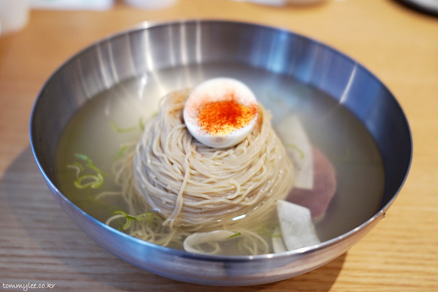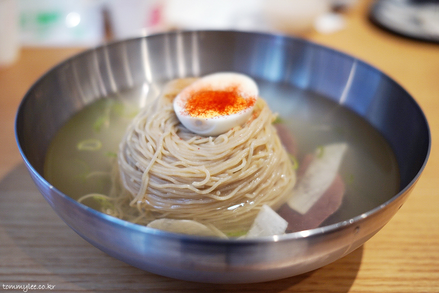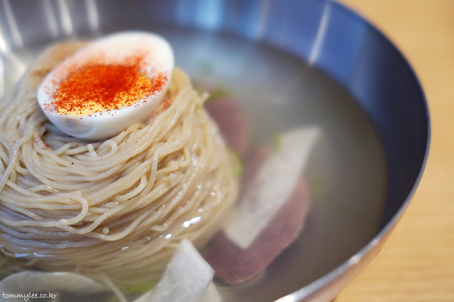 견고한 느낌의 냉면이고 육수가 진해 슴슴하지는 않은 평양냉면.. 볼드한 맛을 선호하시는 분들께 추천하고 싶은 스타일..
