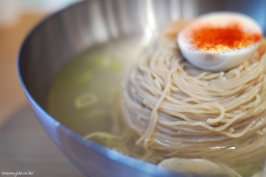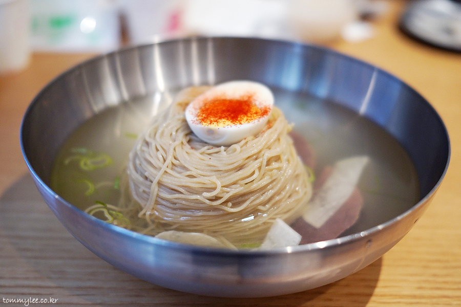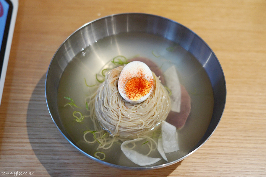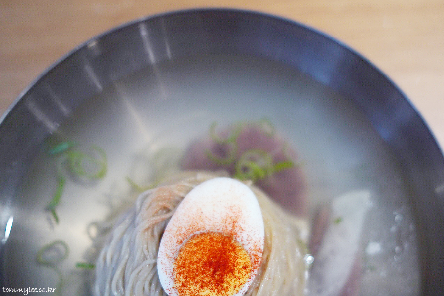 위에서 바라보면 이런 느낌.. 정갈하게 올린 계란 위의 고춧가루가 인상적인 비주얼입니다.. 회전율로 승부를 보는 냉면맛집답지 않게 냉면 제공 시간이 상당히 오래 걸렸어요.. 정확히 14분 만에 제공.. 이유는 모르겠으나 느리네요..
